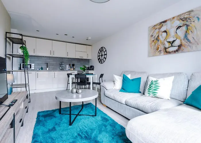 Les installations indépendantes comprennent un réfrigérateur, un four et de la vaisselle, fournis dans un coin repas. Vous pourrez dîner à Yummy House, qui se trouve à 10 minutes en voiture. Villa Loom St est accessible en voiture en 24 minutes depuis l'aéroport de Manchester.